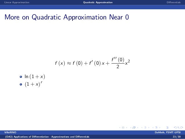 Benginning Calculus Lecture notes 8 - linear, quadratic ... from image.slidesharecdn.com The free online calculator performs explicit linear approximation of a function at any given point. One reason that linear approximations are popular is because linear functions are easy to work with. Quartic equation calculator, 4th degree polynomial, algebra, algebraic equation calculator.