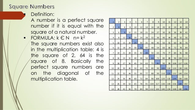 Here you find 3 meanings of the word square number. Square of number = 3 2. An explanation of what square numbers are and how they can be used to work out the area of a what are square numbers? (mathematics) any integer which is the product of some integer with the integer itself.