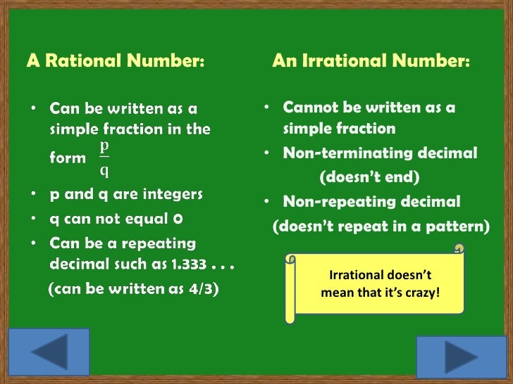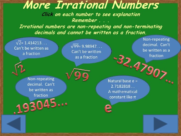 1.2 Irrational Numbers ppt from image.slidesharecdn.com Irrational numbers are part of the real number systems. Irrational numbers are real numbers that cannot be represented as a simple fraction. Perfect numbers are written on the main diagonal of the multiplication table.