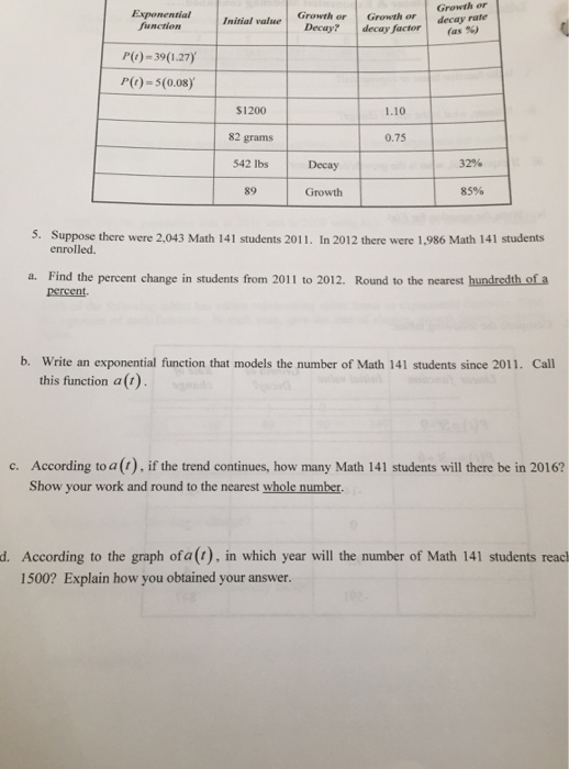 This is because to find the function, note that the initial value is $600 and the common ratio is 1.04 which represents the initial. If you're seeing this message, it means we're having trouble loading external resources on our website. Now, in the given two options the first one has equation , and the other given table forms the exponential function equation. Given the initial value, rate of growth or decay, and time t, solve a continuous growth or decay function.