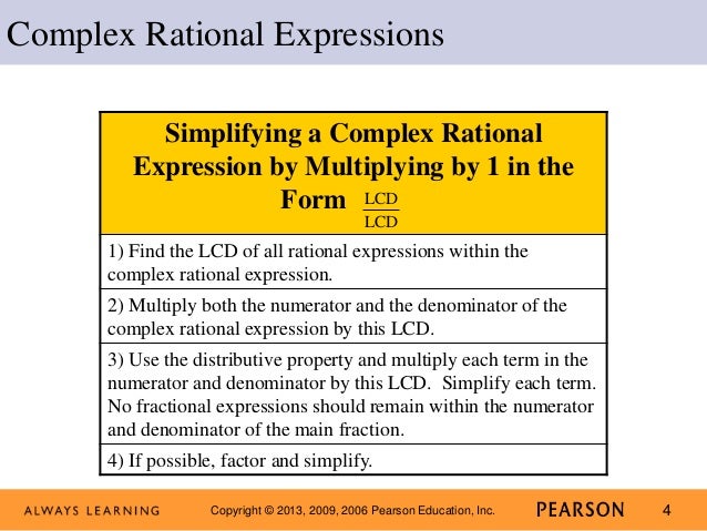 Improve your math knowledge with free questions in simplify rational expressions and thousands of other math skills. Complex fraction calculator (free online tool for simplifying any complex fraction). Rational expressions are simplified in the same way in which numerical numbers or fractions are simplified. Just don't forget the excluded values!