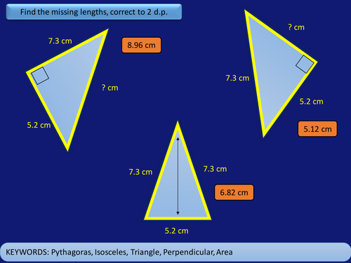 most complete. The proof of the pythagorean theorem illustrated by the applet below is due to gaetano speranza given right δabc, extend side bc to b' so that bb' = ab, the hypotenuse of the triangle. For example, assume an isosceles triangle with two sides of equal but unknown length, one side measuring 8 inches and a height of 3 inches.