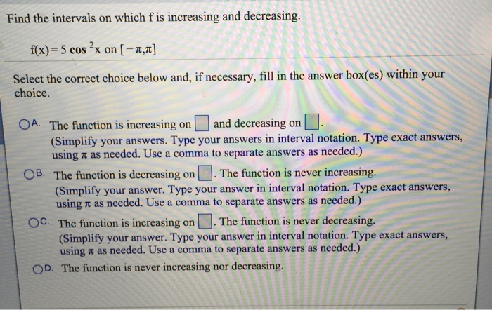 The x+2 is offsetting the input of x. Option 1 would be the correct answer since f'(x) is positive for all those values of x. Increasing/decreasing intervals of a polynomial. For f(x) = x 4 − 8 x 2 determine all intervals where f is increasing or decreasing.